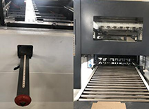 自動收紙裝置,收紙有序。收紙臺車上有兩個檢測開關(guān),可檢測收紙部位??赏ㄟ^人機界面方便快捷地調(diào)節(jié)收紙臺的自動復(fù)位適應(yīng)不同的紙張厚度,當(dāng)紙張滿時,自動警報會提醒操作員及時更換紙張接收站。